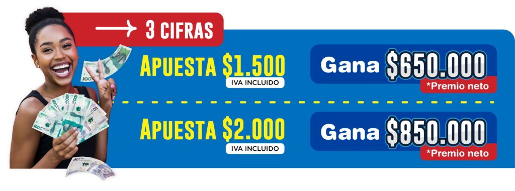 * En San Andrés y providencia el precio de la apuesta es de $3.362 (Exento de IVA)